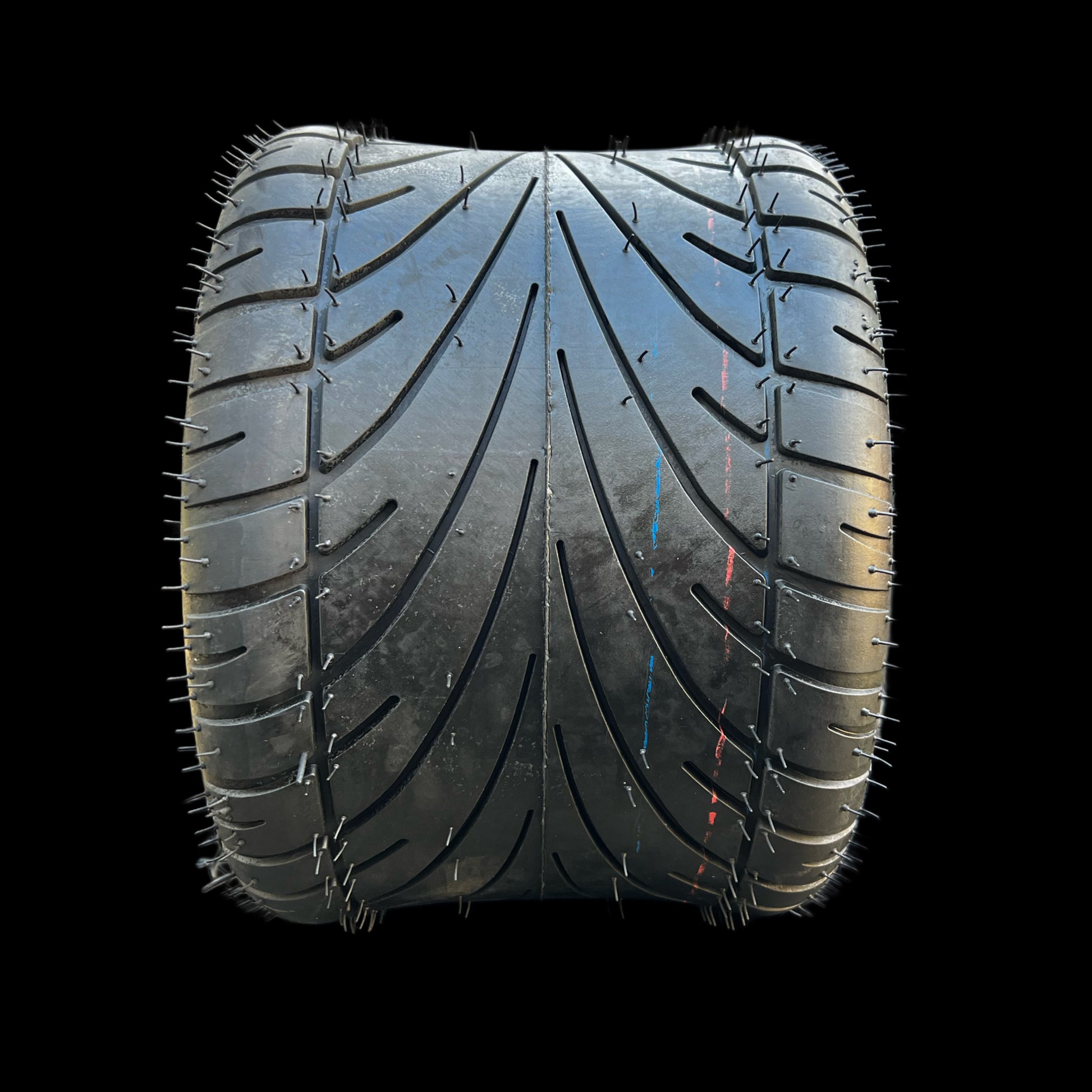 Will fit nicely on a 10x8 rim. If you want a stretch look then use a 10x9 or 10x10 rim. Only 4 available.